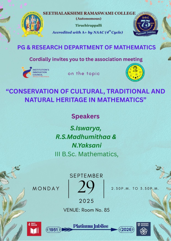 MEETING ON "CONSERVATION OF CULTURAL, TRADITIONAL AND NATURAL HERITAGE IN MATHEMATICS"