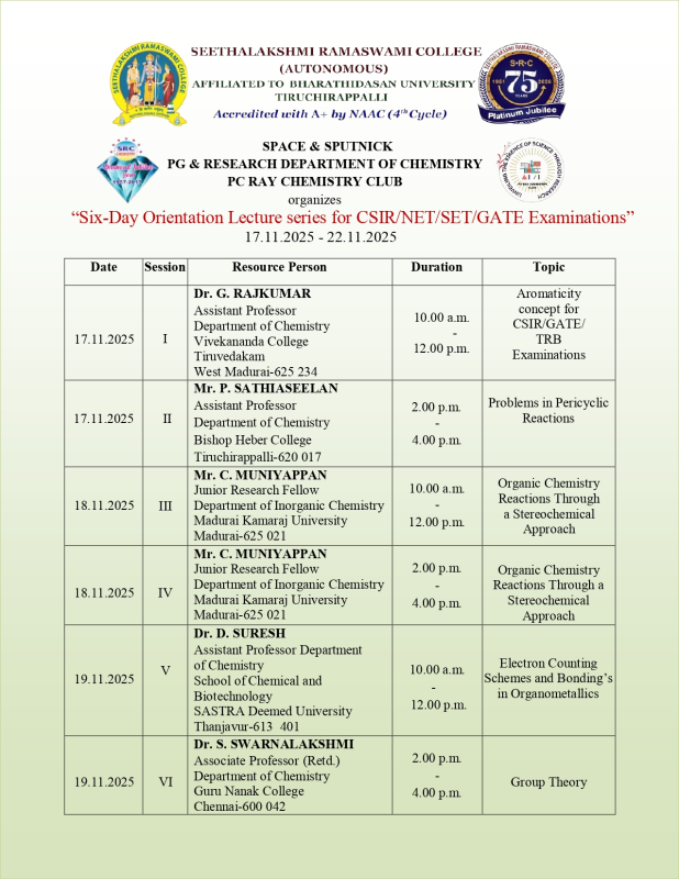 SIX-DAY ORIENTATION LECTURE SERIES FOR CSIR/NET/SET/GATE EXAMIATION