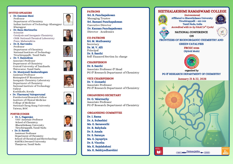 NATIONAL CONFERENCE ON "FRONTIERS OF BIOINORGANIC CHEMISTRY AND GREEN CATALYSIS"