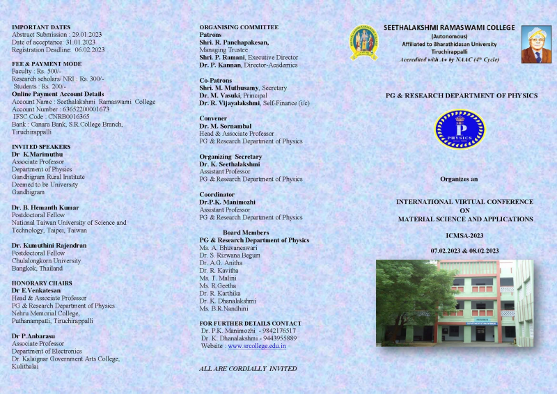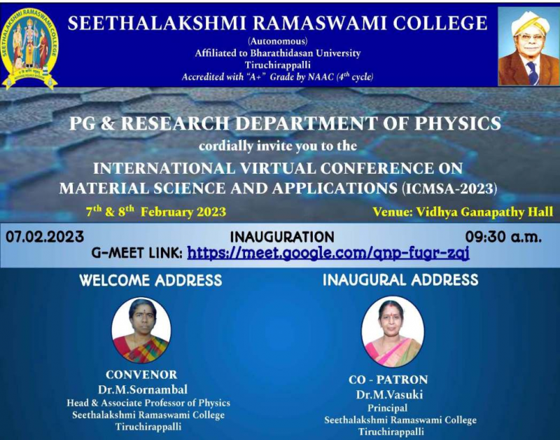 INTERNATIONAL VIRTUAL CONFERENCE ON MATERIAL SCIENCE AND APPLICATIONS ICMSA-2023