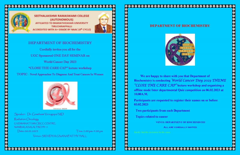 UGC SPONSORED ONE DAY SEMINAR - "NOVEL APPROACHES TO GIAGNOSE AND TREAT CANCERS IN WOMEN"