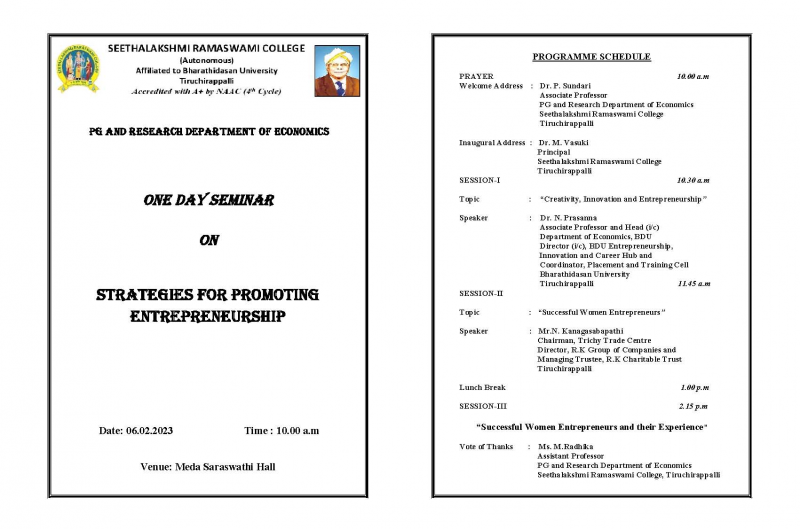 ONE DAY SEMINAR ON STRATEGIES FOR PROMOTING ENTREPRENEURSHIP