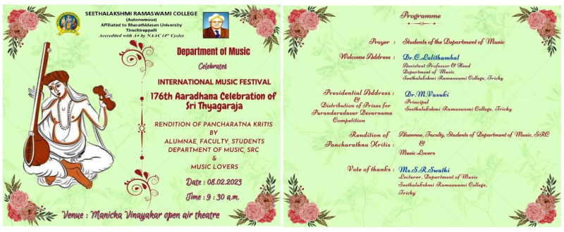 INTERNATIONAL MUSIC FESTIVAL - 176TH AARADHANA CELEBRATION OF SRI THYAGARAJA RENDITION OF PANCHARATNA KRITIS